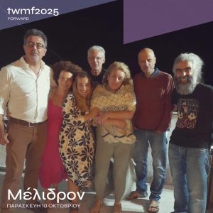 Μέλιδρον [μέλι + ὕδωρ] — η γλυκύτητα της ζωής, η μουσική που ενώνει ρίζες και φωνές. Το Μέλιδρον είναι ένα μουσικό σύνολο που ξεκίνησε το 2011 από την αγάπη για την παράδοση, το έντεχνο και το πολυφωνικό στοιχείο της ελληνικής μουσικής. Από τη Μικρασία και την Ήπειρο μέχρι τη σύγχρονη δημιουργία, το σχήμα πλέκει το παλιό με το καινούριο, την Ανατολή με τη Δύση. Σήμερα, υπό τη μουσική διεύθυνση του Δημήτρη Ξανθού (κιθάρα), το Μέλιδρον ανανεώνεται και παρουσιάζει ένα πολυεπίπεδο ηχητικό τοπίο. Στο Tinos World Music Festival, το Μέλιδρον έρχεται να συναντήσει τον κόσμο μέσα από ήχους που γεφυρώνουν πολιτισμούς, εποχές και συναισθήματα.