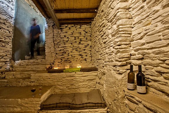 Since centuries, in the idyllic village of Arnados in Tinos island, the need for survival and the spirit of community kept bringing the people together. This aspect of collectivity is reflected not only in the inhabitants, but also in the streets planning of the village, with the houses build in the top of each other with hidden passages and secret doorways in order to provide safe escape from pirates and pillagers that used to roam the islands at that time. Nowadays these practices became obsolete and the charming mazelike architecture of Arnados village has found another innovative uses. In the underground cellars of the settlement, taking advantage of the ideal humidity and temperature conditions, we choose to materialize a dream we held for many decades. A traditional winery, with the goal of providing its visitors and tasters a unique wine, that brings-down the barriers of the people and turns into one big group of friends, like the old days. A winery that reveals itself gradually and literally expands year after year. The old debris that the basements of the houses were filled with during the centuries are being removed, with the care and precision worthy of an archaeological excavation. New beneficial spaces are revealed, and new pathways are waiting to be explored.