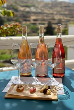 The goat you occasionally meet out of the blue in the streets of the island, symbolizes the purity but also the need to search for the best quality food. It is the goat who will reach the most inaccessible places in order to search and find the most tender crops. Things are easier for you. All you have to do is choose from the carefully selected menu what will soon be in your hands. Freshness and seasonality is what counts most. Vegetables and legumes mixed in fresh salads, cheeses from the Cyclades, sourdough bread that is fermented daily are the favorites. All dishes are created from scratch with their basic ingredients of love and passion to be present from preparation to service. They are accompanied by your choice from the carefully selected wine list that includes exclusively Greek varieties, some rare and forgotten over the years. Particular emphasis is placed on mild intervention wines that highlight the dynamics of the domestic vineyard.